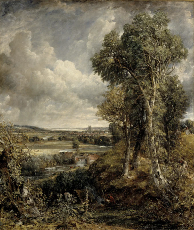 当然,如果你认为康斯太勃尔的作品里没有诗意,那就大错特错了。当然,将他的作品与国民信托所兜售的田园牧歌式的英格兰景象联系起来也是错误的。康斯太勃尔的艺术是粗犷的,有时带有忧郁的气息。其作品《弗拉特福德磨坊》中,他甚至意味深长地将自己的签名刻在了代表泥土的棕色区域上。